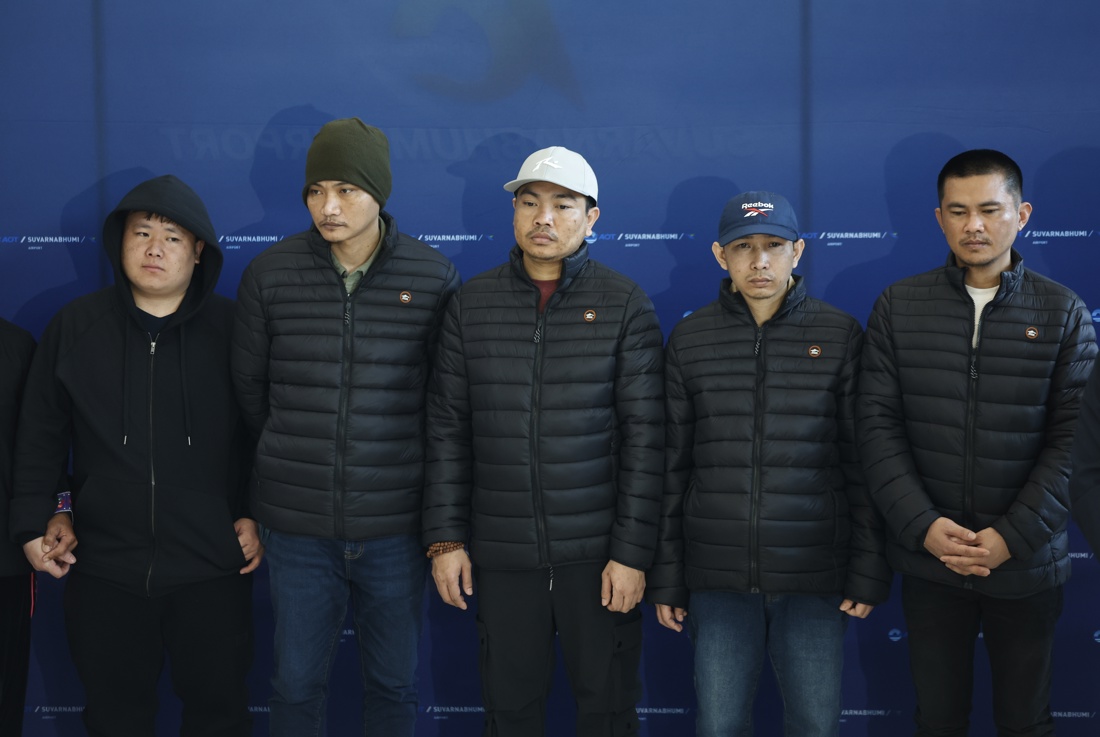 Watchara Sriaoun (33), Pongsak Thaenna (36), Sathian Suwannakham (35), Bannawat Seathao (27) y Surasak Rumnao (32) arribaron desde Israel, donde recibieron atención médica durante los últimos 9 días. Algunos familiares viajaron a Tel Aviv en una misión organizada por los gobiernos de ambos países, pero en el aeropuerto se encontraron con más seres queridos, aprovechando el momento para abrazarse y sonreír, en algunos casos conmovidos hasta las lágrimas.