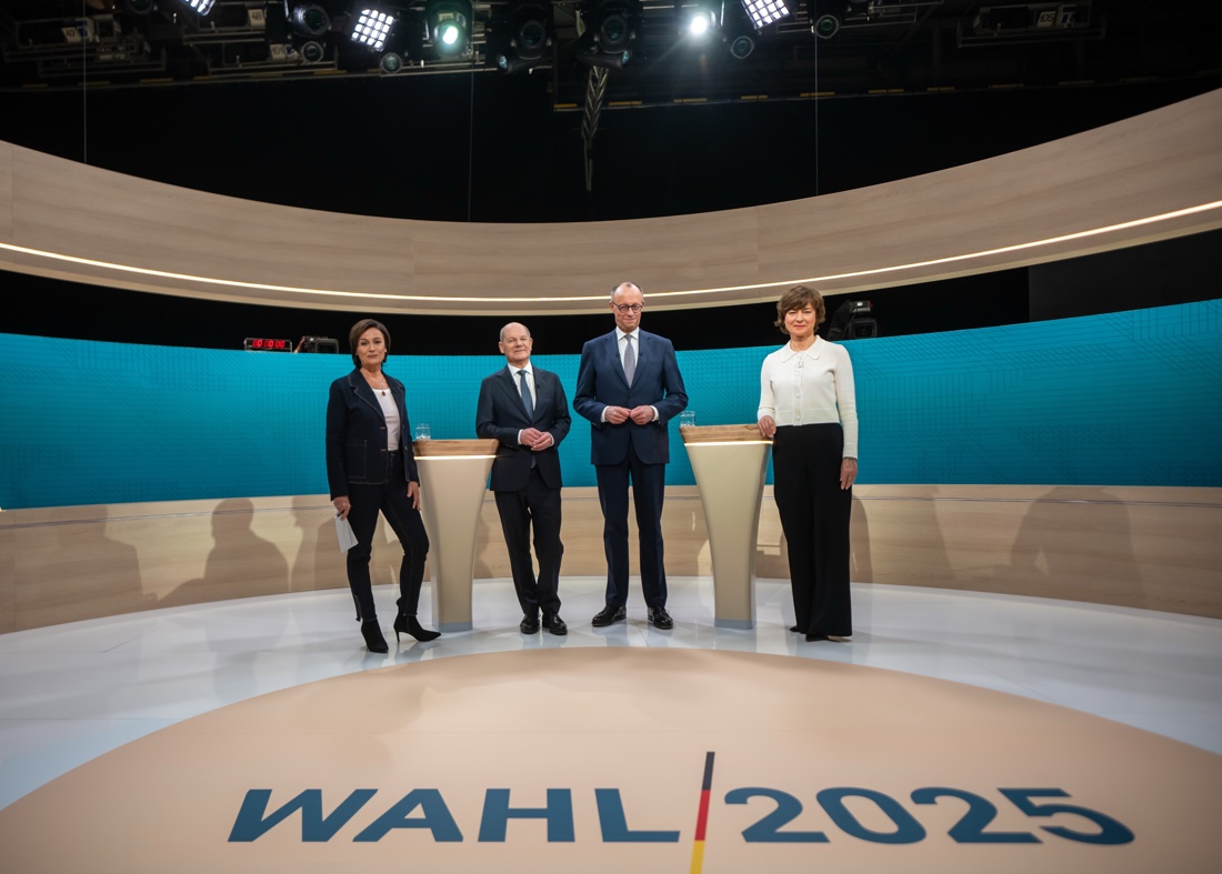 Ambos candidatos debatieron sobre la economía y la política exterior. Merz advirtió sobre la posible desindustrialización de Alemania, mientras Scholz defendió la fortaleza del sector y propuso un fondo de inversión y una bonificación fiscal del 10 % para impulsar la industria. En política internacional, coincidieron en mantener el apoyo a Ucrania sin aceptar su ingreso en la OTAN y en fortalecer la unidad europea ante el regreso de Donald Trump al poder en EUA.