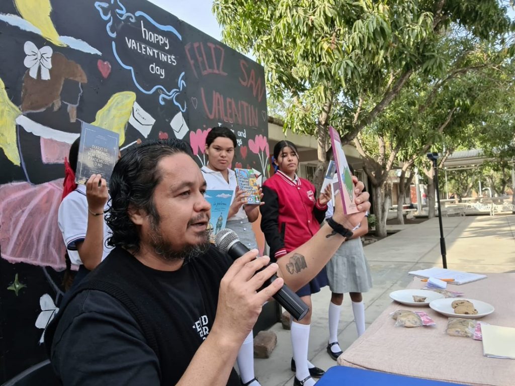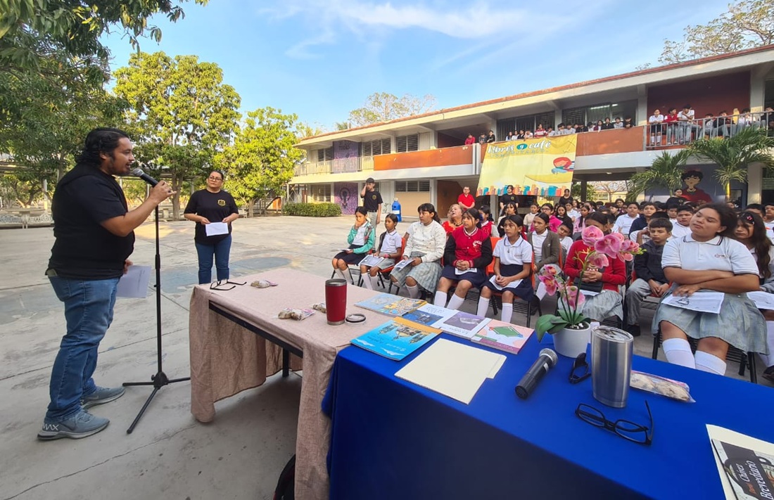 En el marco del Café Literario del Amor y la Amistad, organizado por la Escuela Secundaria “Adalberto Torres Gaytán” de Tecomán, los escritores José Alberto Llanes Castillo y Omar David Ávalos Chávez fueron los invitados especiales. Esta jornada literaria fue coordinada por la directora del plantel, Isabel Martínez Pérez.