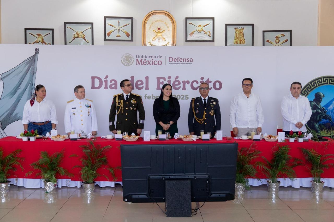 En el marco del Día del Ejército Mexicano, la gobernadora de Colima, Indira Vizcaíno Silva, encabezó un desayuno junto al General Juan Bravo Velázquez, comandante de la 20 Zona Militar, donde destacó la invaluable aportación de esta institución a la sociedad colimense.
