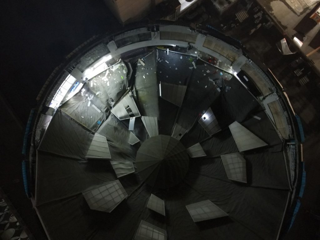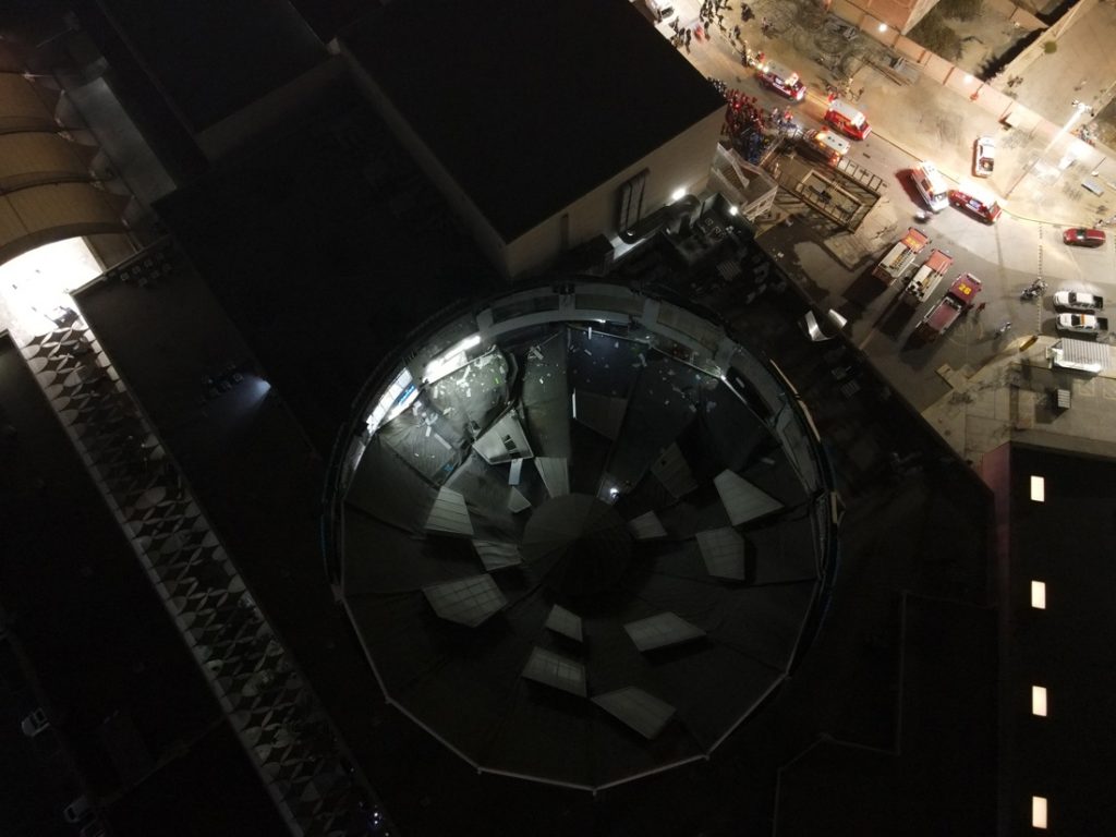 La zona de comidas del centro comercial ocupa un gran espacio circular dentro del centro comercial y estaba coronada por una suerte de cúpula ornamentada, que fue la que se desplomó.
