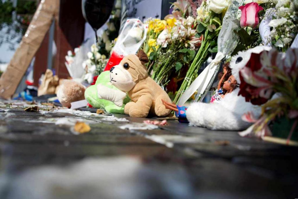En la puerta principal del centro comercial, que permanece cerrado, familias y allegados han colgado fotos, objetos y velas en honor a las víctimas, y también carteles que rezan “Real Plaza nunca más, justicia”.