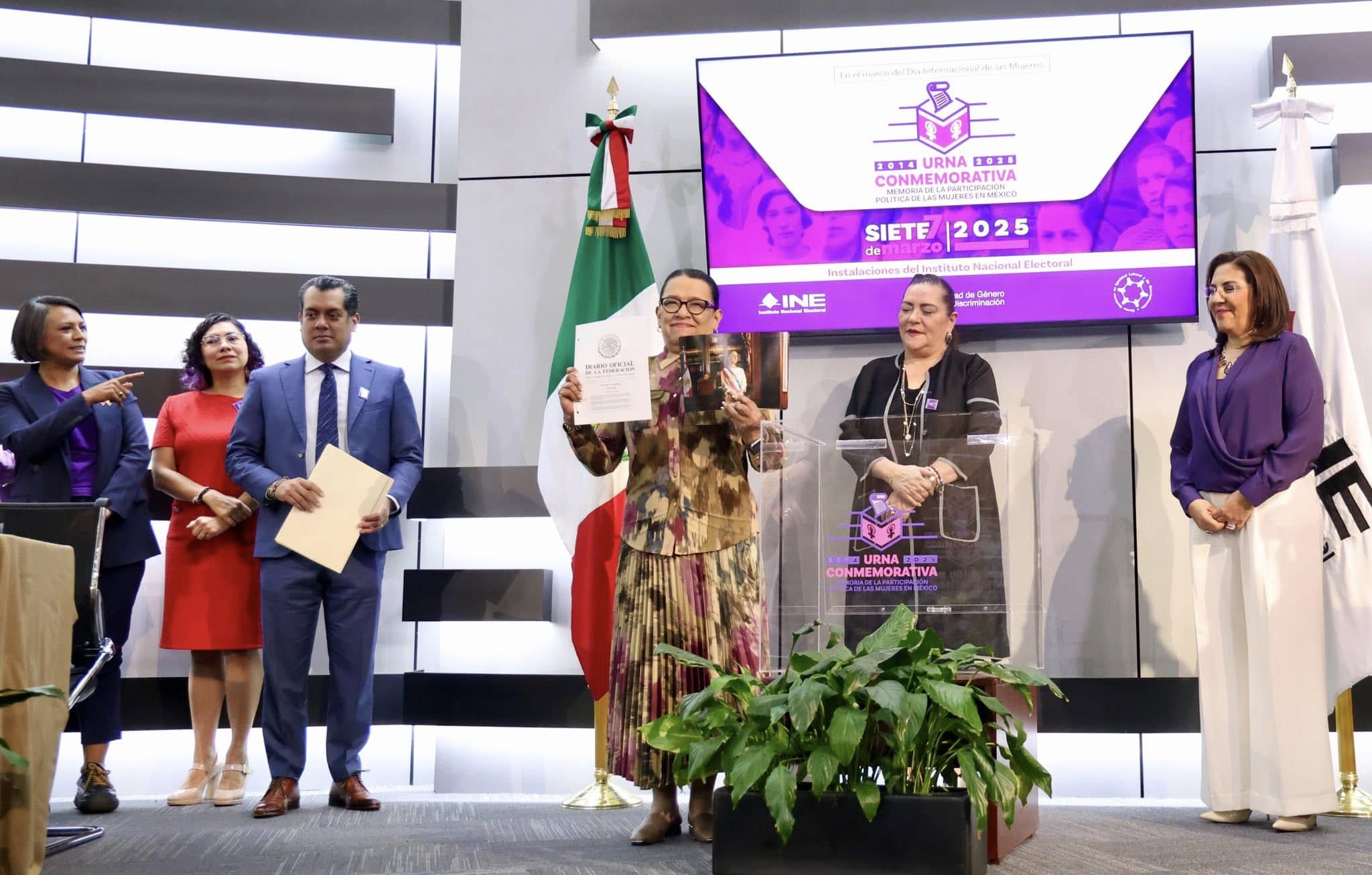 El INE conmemoró el Día Internacional de la Mujer, con la ampliación de la urna que contiene la memoria de la participación de las mujeres en México, desde 1953, cuando reconoció su derecho al voto.