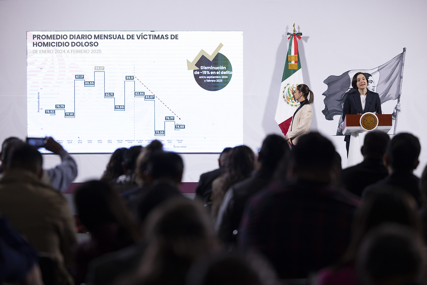 La funcionaria explicó que al inicio de la administración en septiembre pasado el promedio de víctimas de homicidio doloso era de 86.9 y para este febrero fue de 74.6.