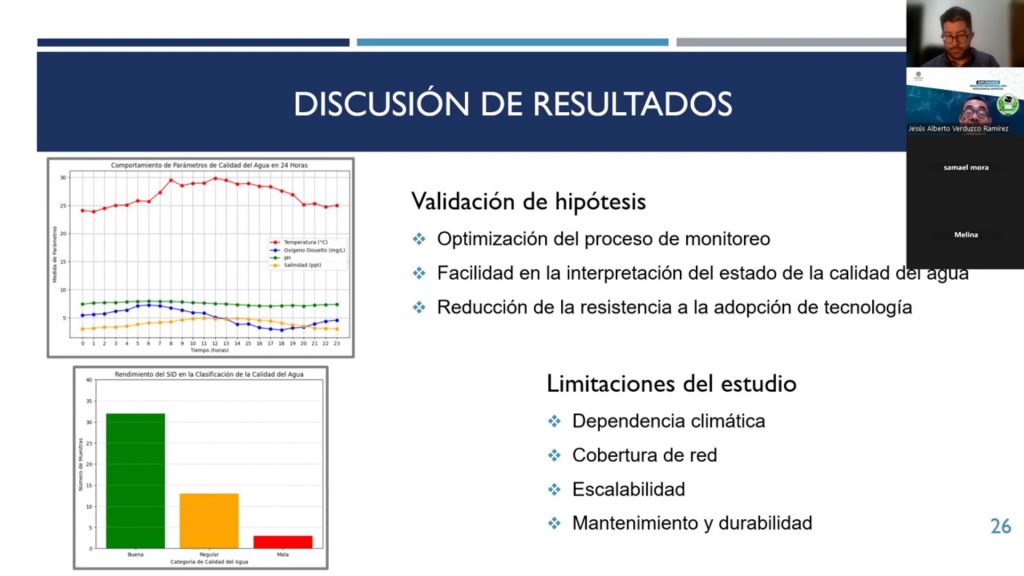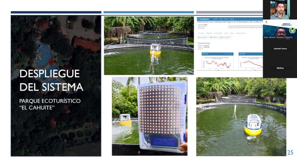 Durante la conferencia “Experiencias en el desarrollo de prototipos orientados a la automatización del monitoreo de la calidad del agua en granjas de cultivo acuícolas”, el profesor Alberto Verduzco Ramírez presentó avances en el diseño e implementación de sistemas inteligentes para la acuicultura.