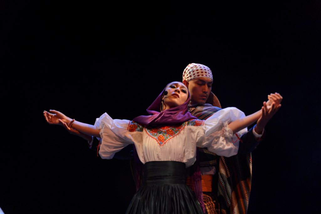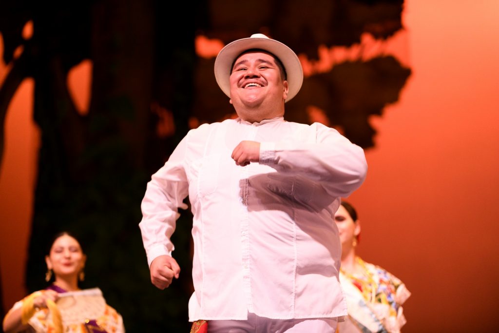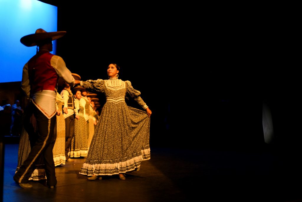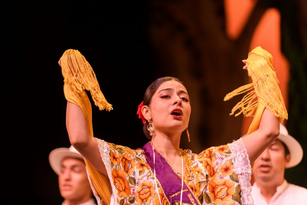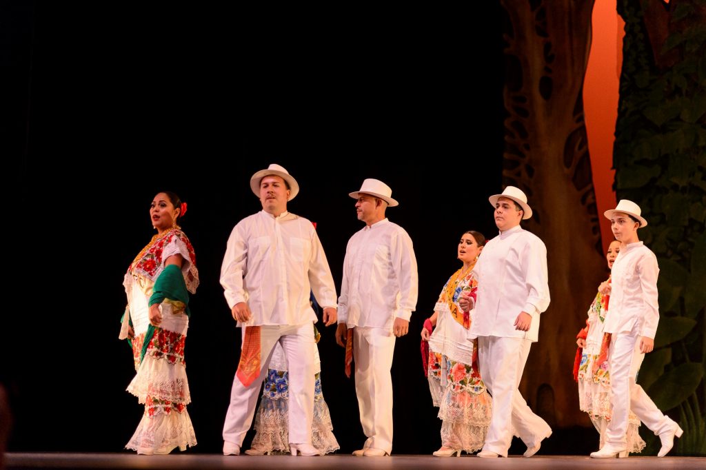 La función inaugural abrió con “Los incensarios”, una coreografía inspirada en piezas arqueológicas de la cultura maya. El público disfrutó de una serie de cuadros que integraron música en vivo y danza, con la participación del Mariachi Universidad de Colima y del Coro del Ballet. Ese último interpretó trova yucateca, así como canciones de Veracruz y del norte del país.