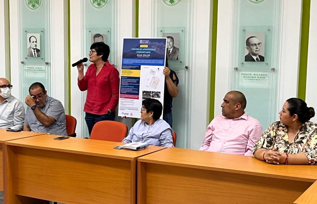 Uno de los momentos más significativos del evento fue la presentación del proyecto de Urbanismo Comunitario en Agua Dulce, elaborado por el Cuerpo Académico (CA) 27 de la Facultad de Arquitectura y Diseño. Las doctoras Reyna Valladares Anguiano, Martha Chávez González y Susana Preciado Jiménez lideran esta iniciativa, que busca construir un espacio educativo a partir de un proceso de planeación participativa con la comunidad.