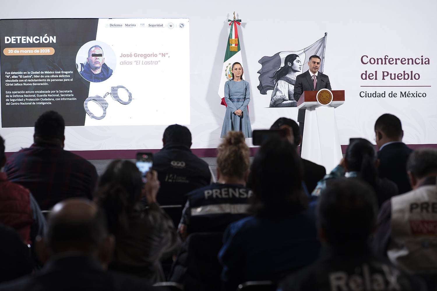 “Se le vincula con el reclutamiento de personas para la organización delictiva durante el periodo de mayo del 2024 a inicios de marzo de 2025”, añadió el titular de la SSPC.