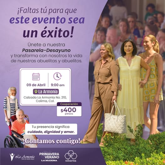 Con el objetivo de recabar recursos para la atención de las personas adultas mayores, el próximo 9 de abril se realizará un evento de Desayuno Pasarela Primavera-Verano en la Casa del Adulto Mayor “La Armonía”.