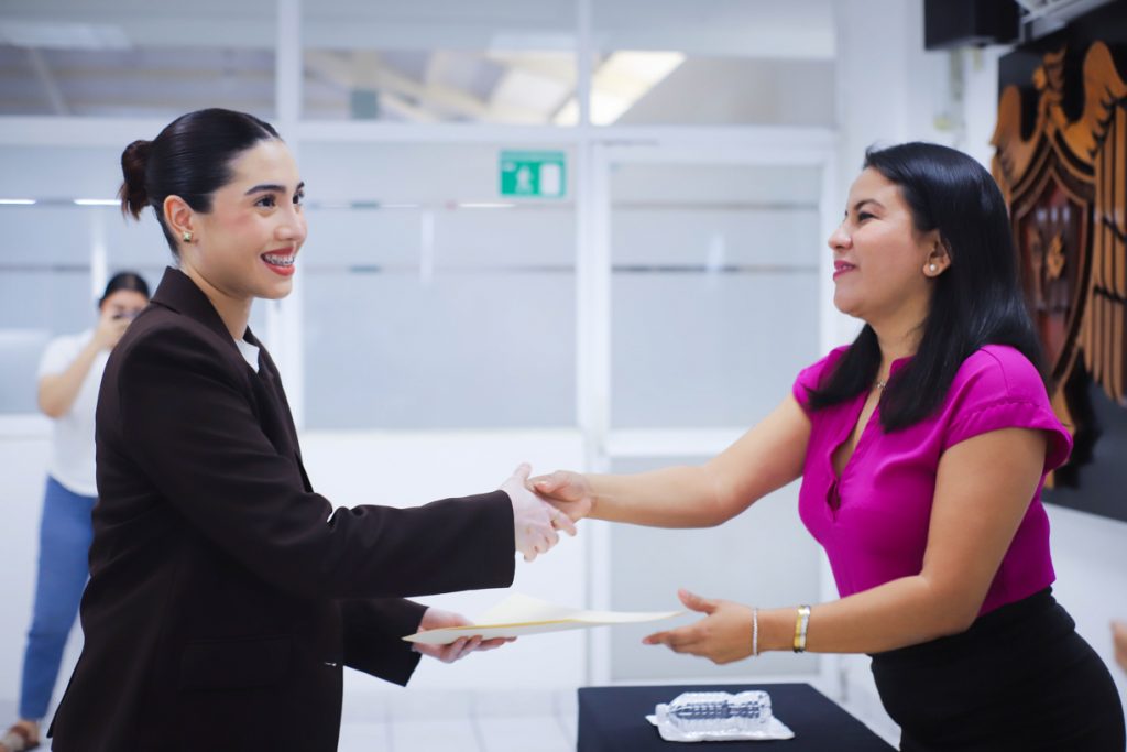 En su intervención, compartió una reflexión: “En la vida diaria siempre nos gusta ser los primeros, incluso cuando vamos a comprar algo, pero no todos ni todas estamos dispuestos a pagar el precio de ser el número uno. Por eso, les felicitamos de parte de toda la institución, porque fueron valientes al participar en un intercambio y realizar sus prácticas profesionales en un entorno distinto al de su país. Detrás de esta constancia hay muchas historias de retos personales y académicos”.