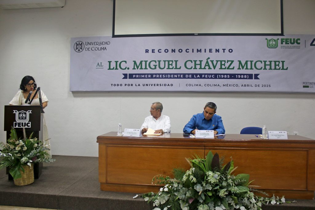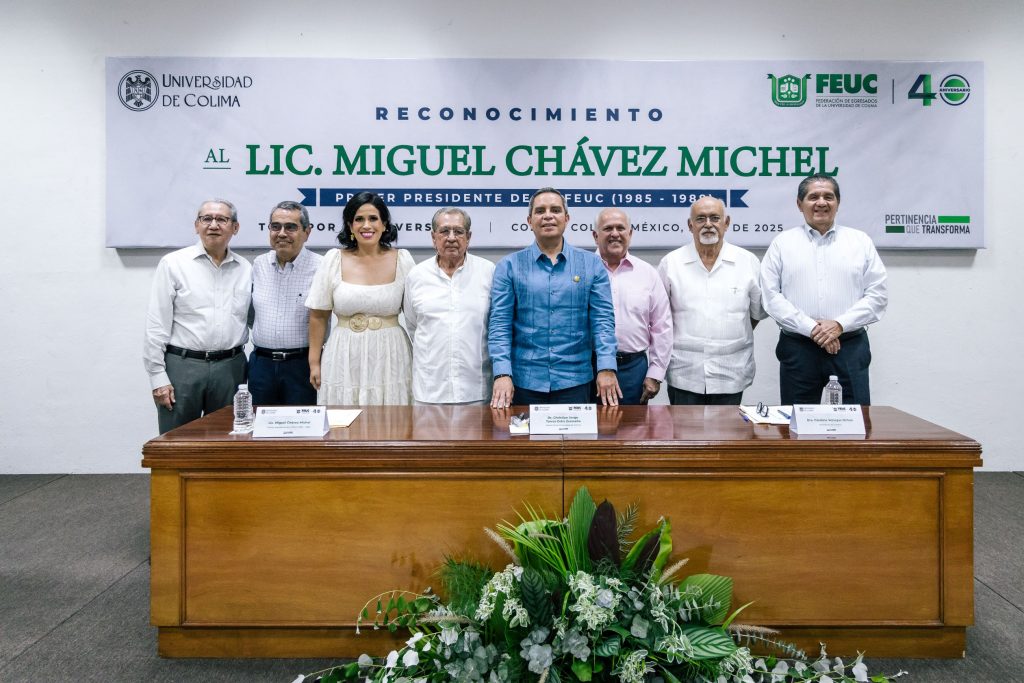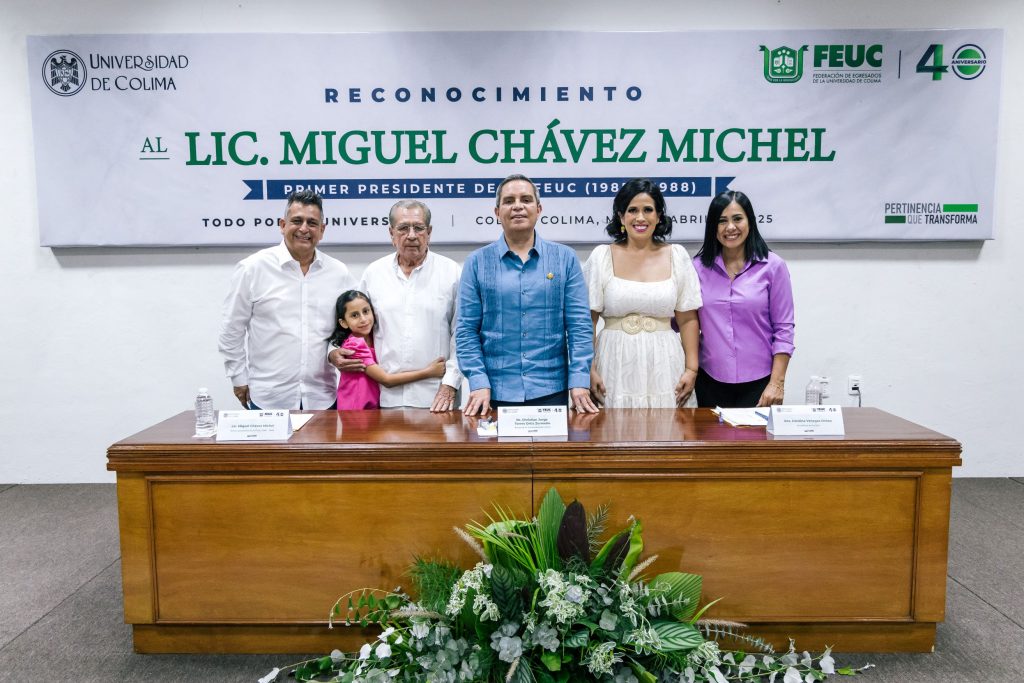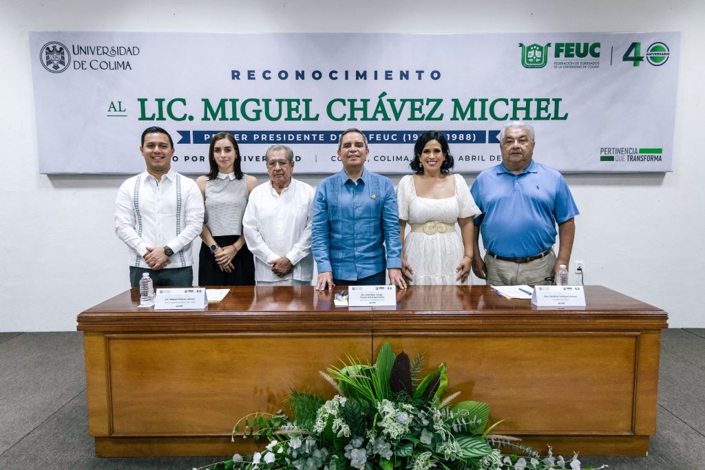 En el marco de los 40 años de vida de la Federación de Egresados de la Universidad de Colima (FEUC), se realizó un emotivo homenaje a quien fue uno de los fundadores y primer presidente de esa federación (1985-1988), Miguel Chávez Michel. La ceremonia, a la que acudieron exrectores, historiadores, cronistas, funcionarios universitarios, docentes y amigos y familiares del homenajeado, se realizó en uno de los auditorios del Archivo Histórico de la Universidad de Colima (UdeC), edificio primigenio de nuestra Casa de Estudios.