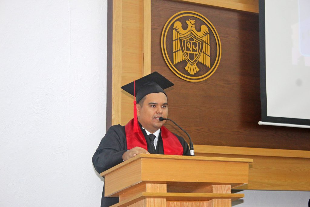 Finalmente, agradeció a la Universidad de Colima y en particular a la Facultad de Derecho por proporcionarles un entorno seguro, instalaciones adecuadas y un destacado cuerpo docente integrado por litigantes, jueces y magistrados que enriquecieron su formación.
