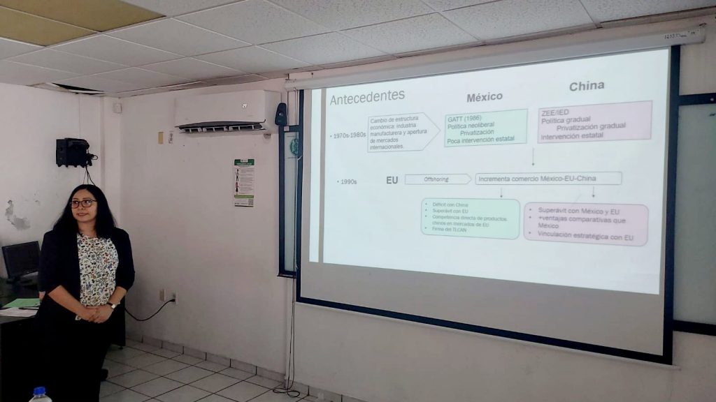 Actualmente, Andrea Salazar trabaja en su tesis titulada “La relación de México con Estados Unidos y China: oportunidades para lograr un equilibrio comercial estratégico, 2001–2025”, bajo la dirección del Doctor Juan González. “Utilizamos teorías sobre el crecimiento endógeno, y precisamente en este encuentro estará Paul Romer, quien es el principal teórico de estas ideas, así como Joseph Stiglitz y Eric Maskin. Será importante conocerlos e intercambiar ideas”, explicó.
