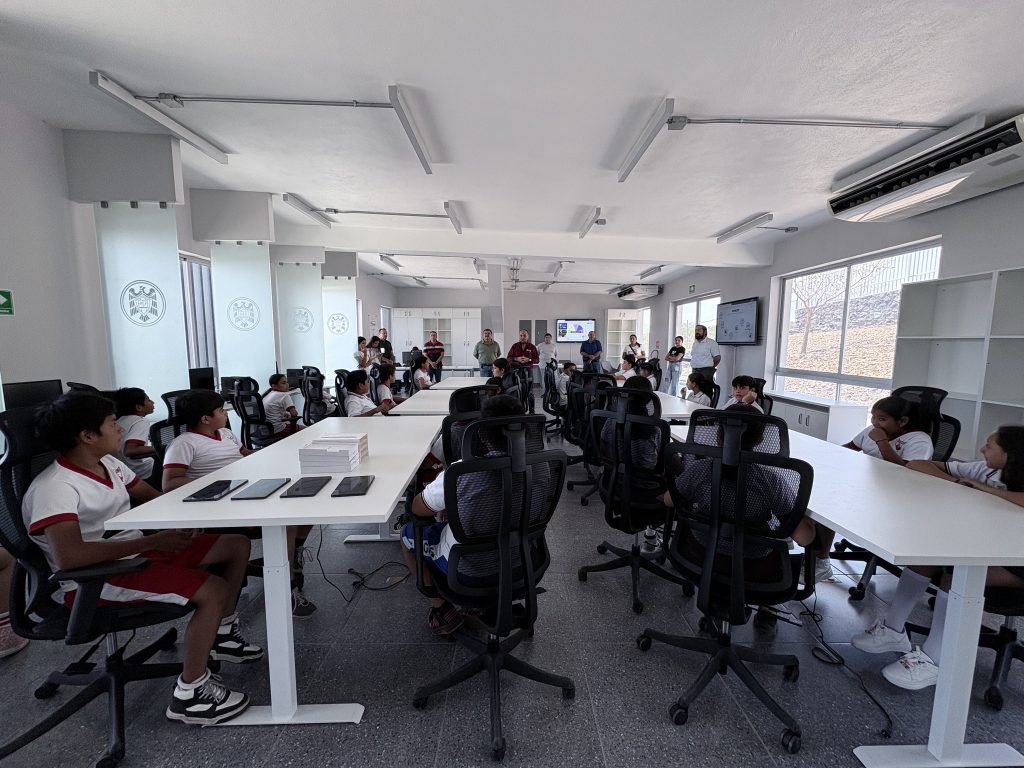 Durante la visita, 120 alumnas y alumnos de los 6 grados de primaria, acompañados por su director, 9 docentes y madres y padres de familia, recorrieron las instalaciones del plantel, incluyendo la recién inaugurada Biblioteca Inteligente, un espacio innovador que refleja el compromiso de la institución con el uso de tecnologías aplicadas a la educación.