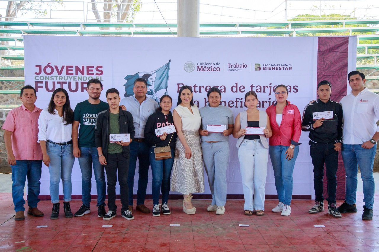 La gobernadora Indira Vizcaíno, encabezó la entrega de tarjetas bancarias a 458 personas del municipio de Villa de Álvarez, que se incorporaron al programa federal “Jóvenes Construyendo el Futuro” (JCF), organizado por la Delegación de Programas para el Bienestar del Gobierno de México.