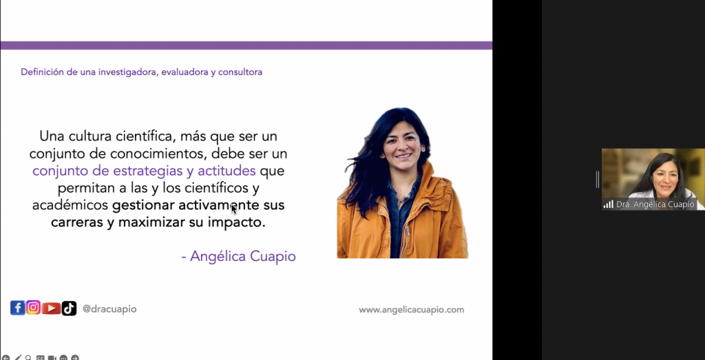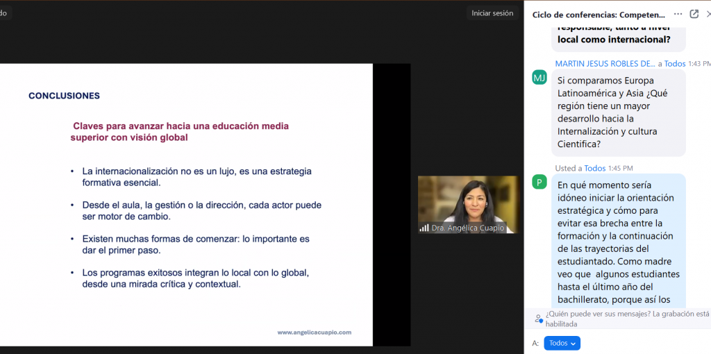 Angélica Cuapio, figura clave en la intersección de la investigación científica, educación superior y la gestión de proyectos de alto impacto internacional, fue invitada por la Oficina de Internacionalización y Cooperación Académica de la Universidad de Colima para dar la charla virtual “De lo local a lo global: Cómo construir carreras científicas y académicas internacionales”.