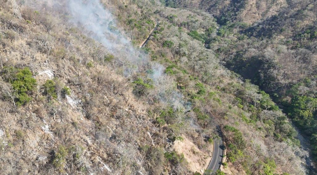 Como consecuencia de este incendio forestal, precisa el boletín, se registra la caída de material en el tramo del kilómetro 33 sobre la vía Villa de Álvarez a Minatitlán, lo que representa un riesgo para quienes transitan por esta carretera intermunicipal.