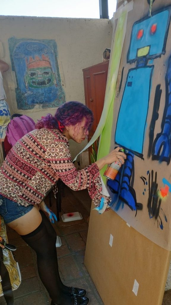 La actividad se realizó en el Museo Universitario de Artes Populares “María Teresa Pomar” (MUAP), donde las y los asistentes fueron recibidos con café y pan. Posteriormente, se llevó a cabo la mesa de diálogo “Intervenciones Urbanas: Apropiación del Espacio y Narrativas Locales de Colima”, en la que participaron los artistas visuales Katia Seichel (@seichelita), Vado Va (@vadova_artworks), Areck (@artec.k) y la estudiante de Artes Visuales conocida como Kontra Kultura (@kontra_kultura).