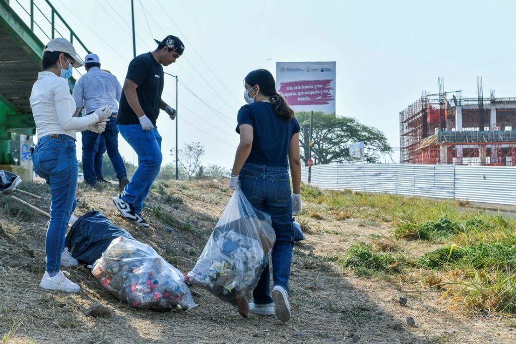 En la delegación Coquimatlán, 200 universitarios limpiaron las laderas del río, calles y jardines de la colonia Emiliano Zapata.