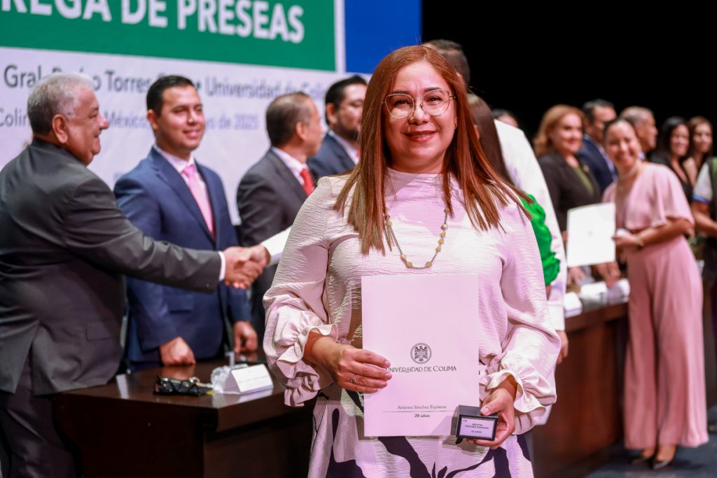 En el Teatro Universitario “Coronel Pedro Torres Ortiz”, se llevó a cabo la ceremonia de entrega de 429 preseas a las y los universitarios que cumplieron 15, 20 y 25 años de servicio en la institución, y se entregó reconocimiento a las y los mejores docentes de nivel medio superior y superior de 2024 de la Universidad de Colima (UdeC).