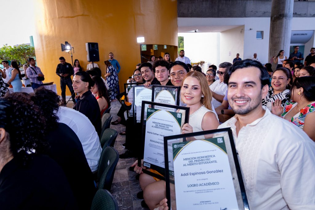 En el marco del 70 aniversario de la Federación de Estudiantes Colimenses (FEC) y del 85 aniversario de la Universidad de Colima (UdeC), se entregaron los “Premios FEC al Mérito Estudiantil 2025”, a destacados estudiantes de nuestra Máxima Casa de Estudios por sus contribuciones en diversas áreas a favor de la sociedad.