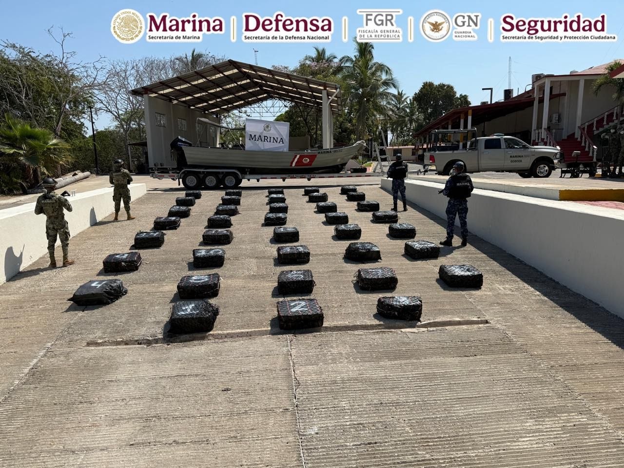 En una operación marítima encabezada por elementos de la Secretaría de Marina (Semar), a través de la Armada de México en funciones de Guardia Costera, y en coordinación con la Secretaría de la Defensa Nacional (Sedena), la Fiscalía General de la República (FGR), la Guardia Nacional (GN) y la Secretaría de Seguridad y Protección Ciudadana (SSPC), se aseguró e impidió el traslado de aproximadamente 1.5 toneladas de presunta cocaína frente a las costas del estado de Jalisco.