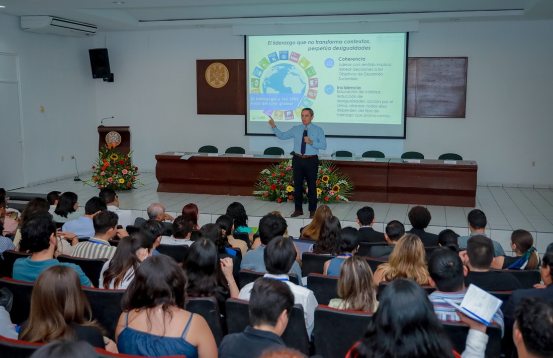 Como parte del programa de actividades, el Rector Christian Torres Ortiz impartió la conferencia “El liderazgo como agente de cambio para promover el desarrollo económico y social”, en la que compartió una reflexión sobre liderazgo, formación e intercambio de ideas como pilares para el desarrollo económico y social.