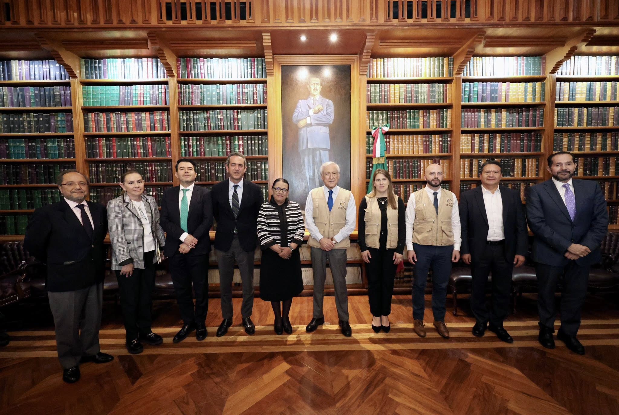 La secretaria de Gobernación, Rosa Icela Rodríguez, recibió a los integrantes de la misión de la Organización de Estados Americanos (OEA), que realizarán labores de observación en la elección judicial.