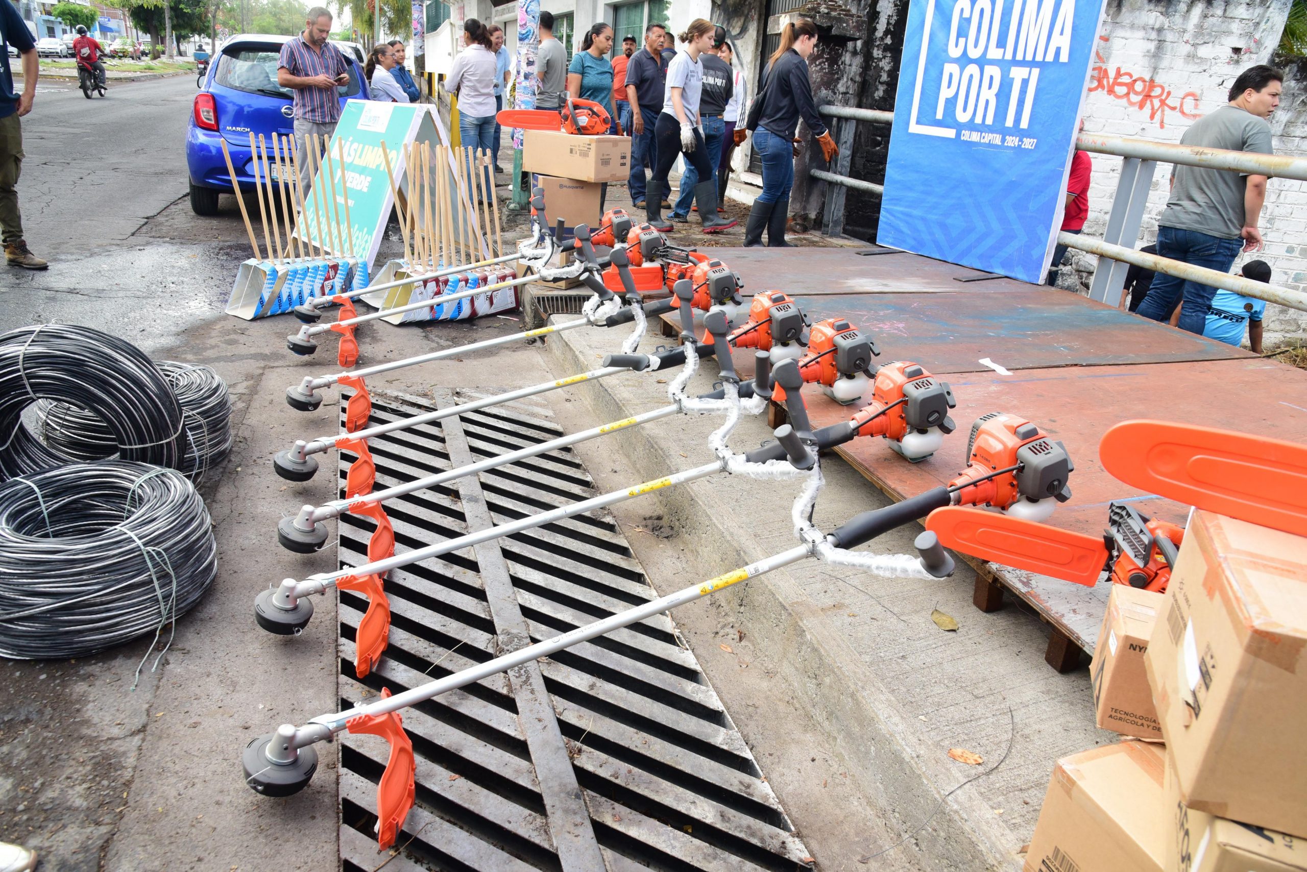 El presidente municipal, Riult Rivera, encabezó la entrega de diverso material a la Dirección de Servicios Públicos, con el propósito de reforzar las labores de limpieza y mantenimiento durante la próxima temporada de lluvias. La ceremonia tuvo lugar en el marco de la brigada de limpieza que se realizó en el arroyo “El Manrique”, acompañada por todo el equipo del Ayuntamiento de Colima.