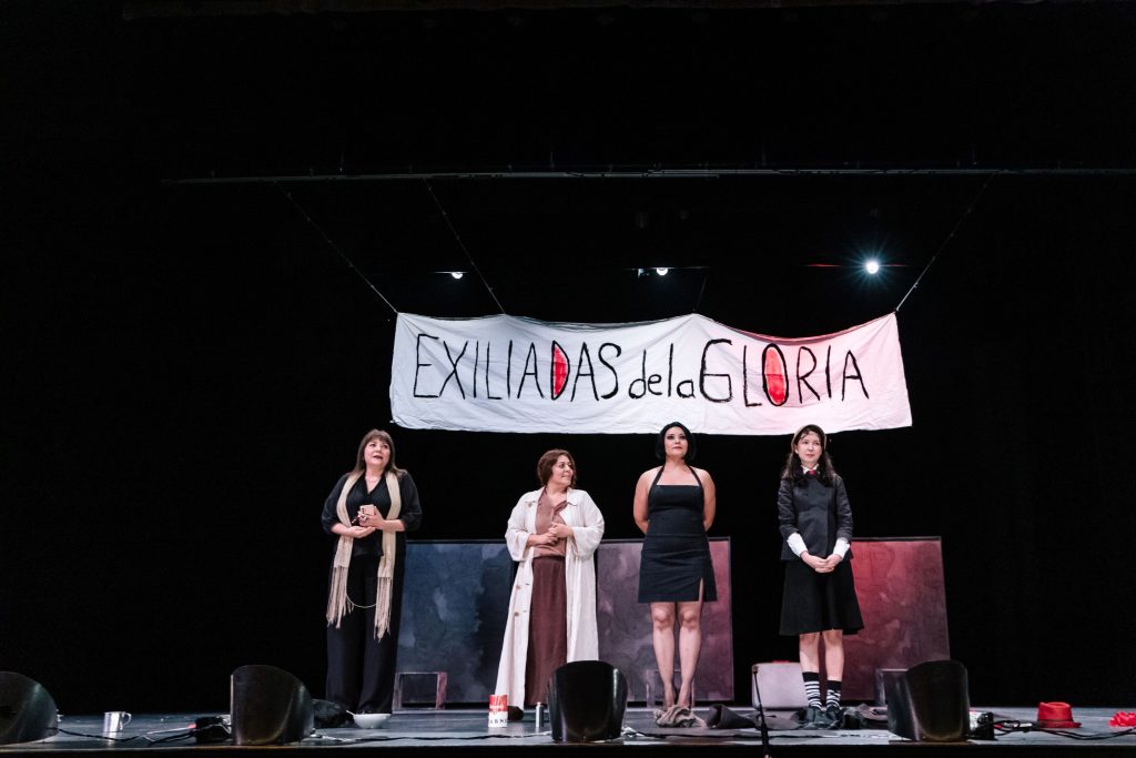 En el marco de las actividades por su 25 aniversario, la Compañía de Teatro “Cuatro Milpas” presentó, en el Teatro Universitario “Coronel Pedro Torres Ortiz” de la Universidad de Colima, la puesta en escena “Exiliadas de la Gloria”, obra dirigida y escrita por Janet Pinela, quien se inspira en 3 personajes del dramaturgo y poeta alemán Bertolt Brecht (1898-1956).