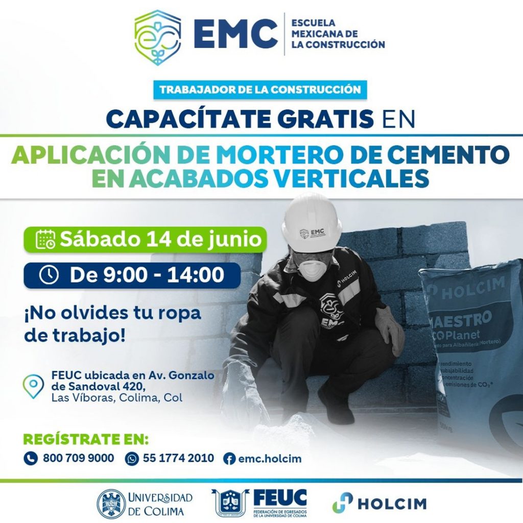 La Universidad de Colima (UdeC), a través de la Federación de Egresados (FEUC), en conjunto con Holcim México y la Escuela Mexicana de la Construcción (EMC), reafirma su compromiso con el fortalecimiento del tejido social y productivo de Colima a través de la profesionalización de uno de los oficios más importantes y valiosos para el desarrollo de nuestro entorno: el de la construcción.