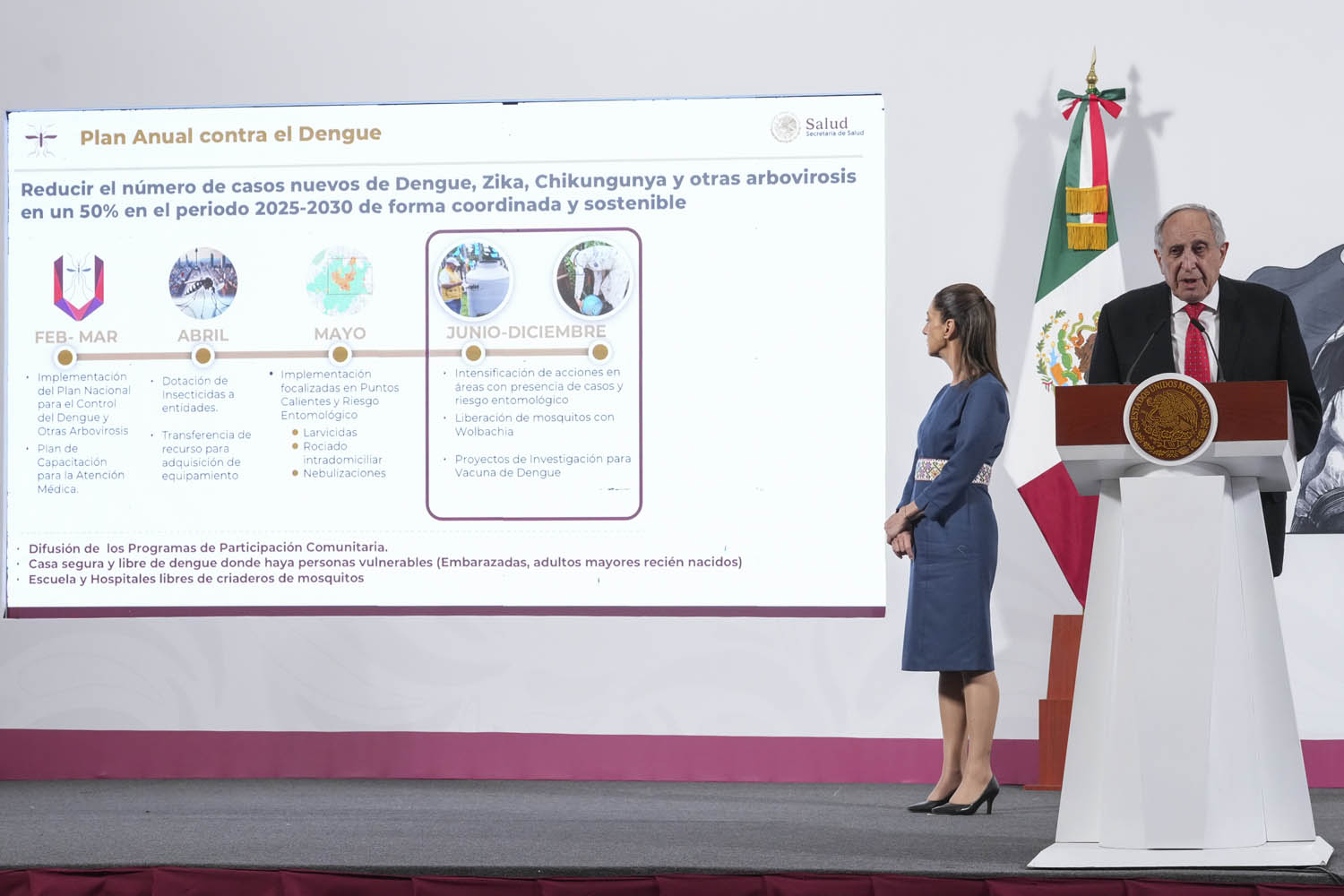 “A partir de junio a diciembre se intensificarán las acciones en áreas con presencia de casos y riesgo. También la liberación de mosquitos con una bacteria volvakia (…), y proyectos de investigación para el desarrollo de una vacuna contra el dengue”, señaló el titular de la SSa, David Kershenobich.