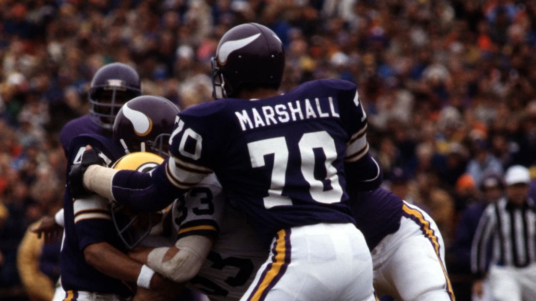 Marshall participó en los Super Bowls IV, VIII, IX y XI durante la década de los 70, cuando los Vikings fueron subcampeones en todas sus apariciones. El defensivo inició su carrera en 1960 con Cleveland Browns, pero fue con Minnesota, desde 1961, donde se convirtió en figura y referente del equipo por casi 2 décadas.