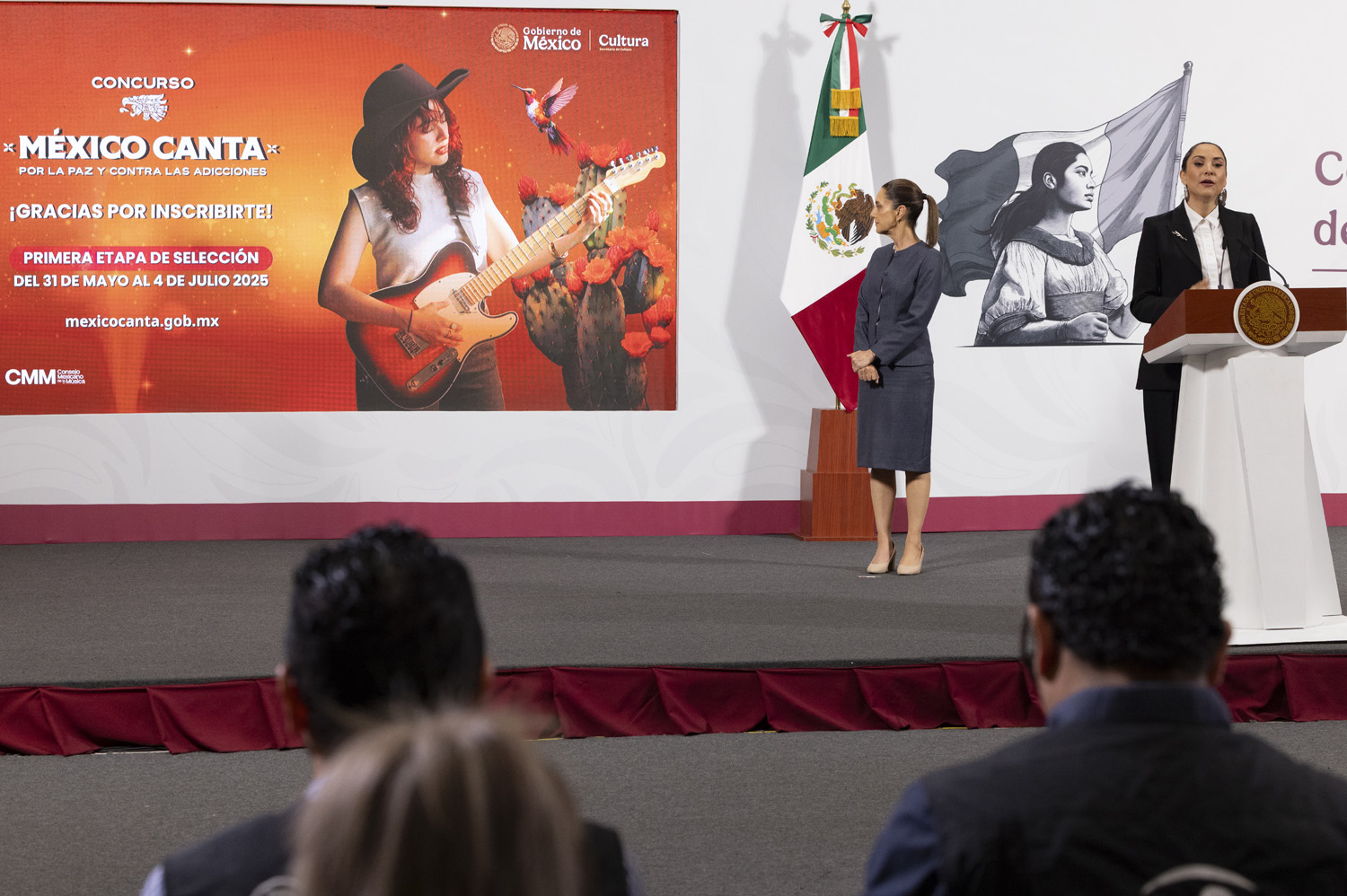 La secretaria de Cultura, Claudia Curiel de Icaza, y la subsecretaria Marina Núñez Bespalova presentaron este viernes, durante la conferencia matutina de la presidenta Claudia Sheinbaum, los avances del concurso “México Canta” y los detalles de Original Encuentro de Arte Textil Mexicano.