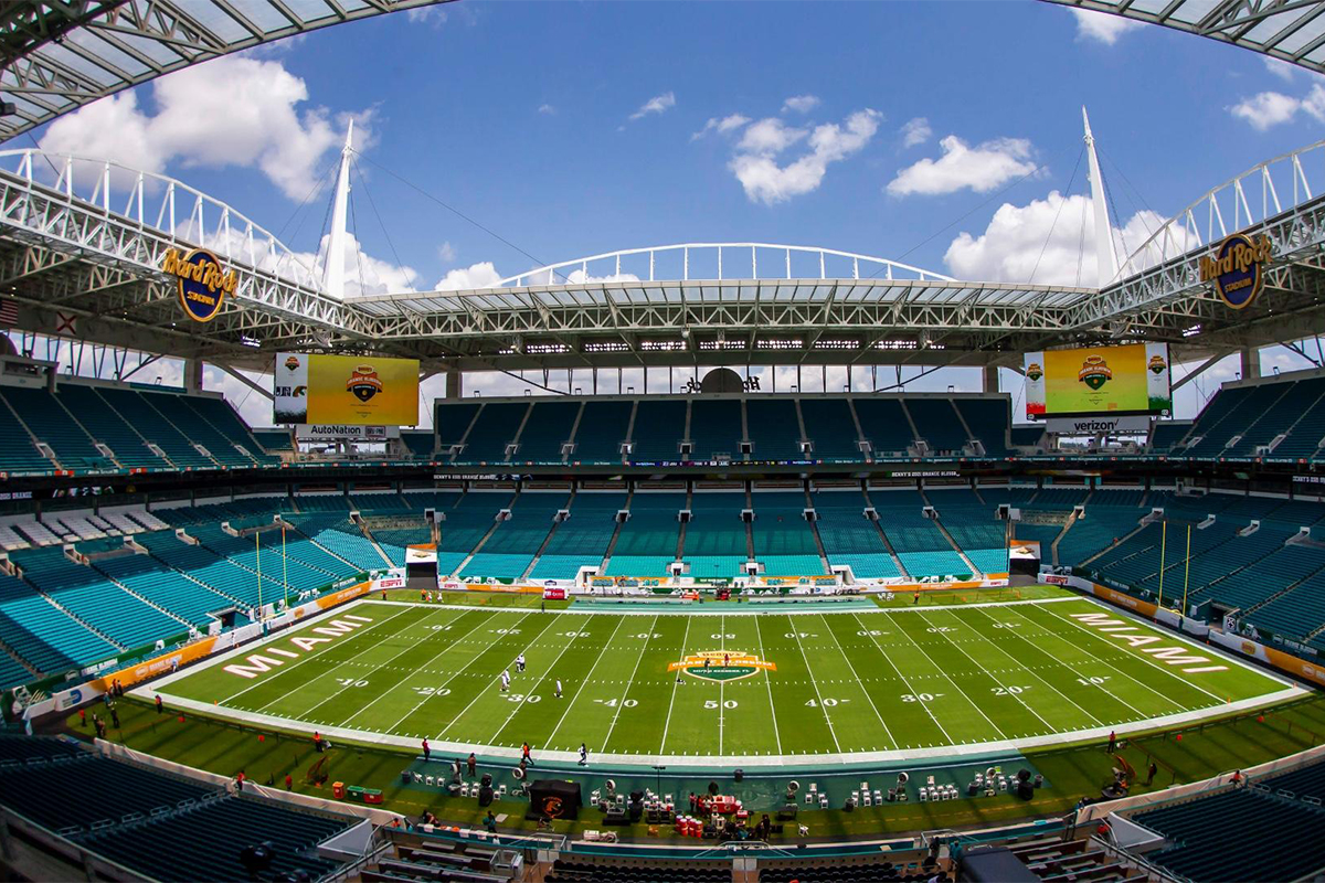 Con capacidad para 65 mil espectadores, el Hard Rock Stadium es el hogar de los Miami Dolphins de la NFL, aunque también acoge el Gran Premio de Fórmula 1 de Miami o el Masters 1000 de Miami de tenis.