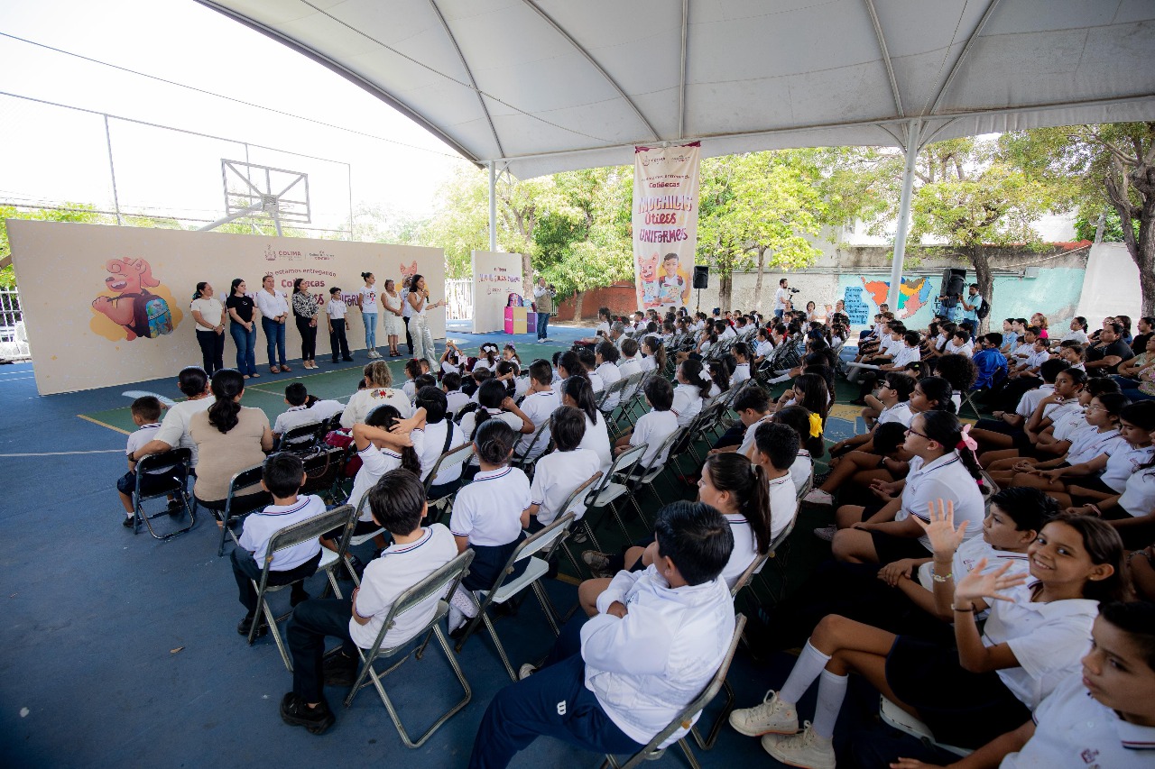 Desde la Escuela Primaria “Severiano Guzmán Moya”, en la capital del estado -donde también se beneficiaron estudiantes del Preescolar “María García Peña”– la secretaria de Bienestar, Inclusión Social y Mujeres (Sebiinsom), Viridiana Valencia, destacó que el objetivo es visitar las cerca de 900 escuelas públicas de la entidad antes de que concluya el ciclo escolar.