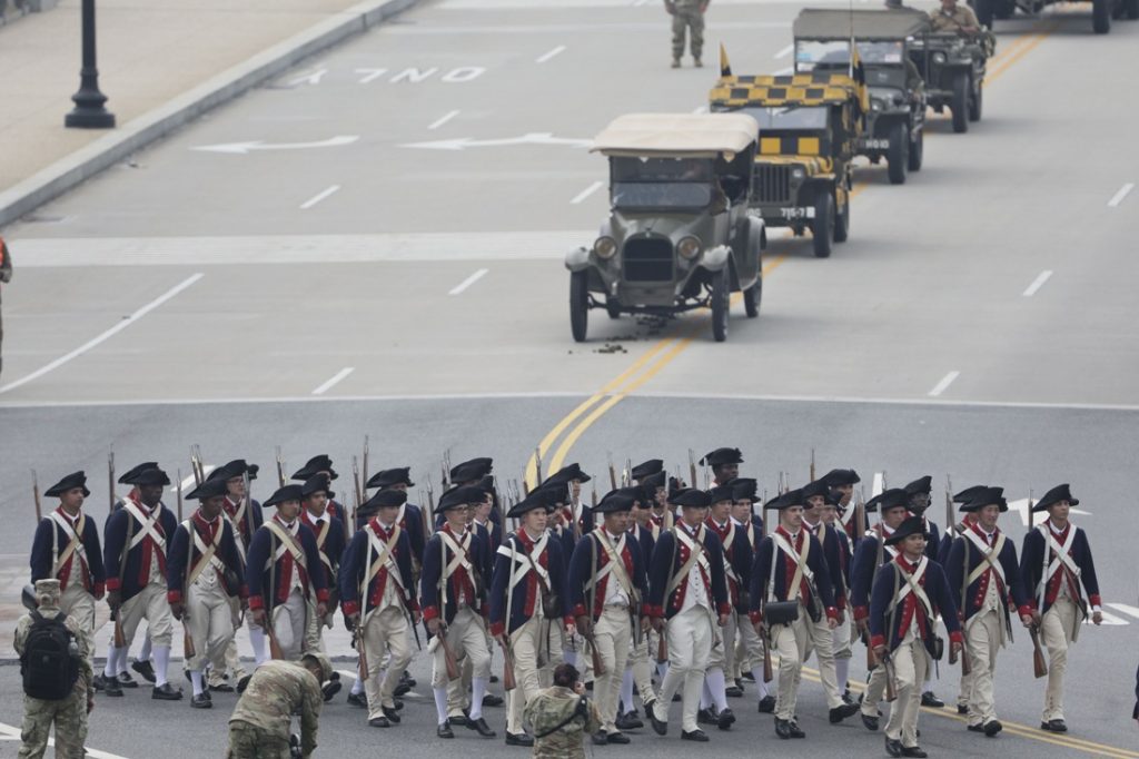 Varios miles de soldados comenzaron a desfilar en la Avenida de la Constitución, incluidos los famosos paracaidistas de los Golden Knights, que aterrizaron sin contratiempos pese al cielo nublado de la capital en la Elipse frente a la Casa Blanca.
