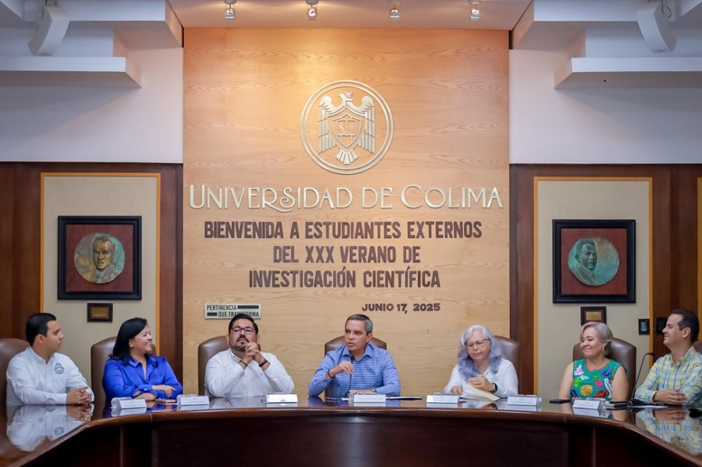 Christian Jorge Torres Ortiz Zermeño, Rector de la Universidad de Colima (UdeC), en un evento celebrado en la Sala de Juntas de Rectoría, dio la bienvenida a las y los estudiantes externos que eligieron a esta institución para realizar su estancia del Verano de Investigación.