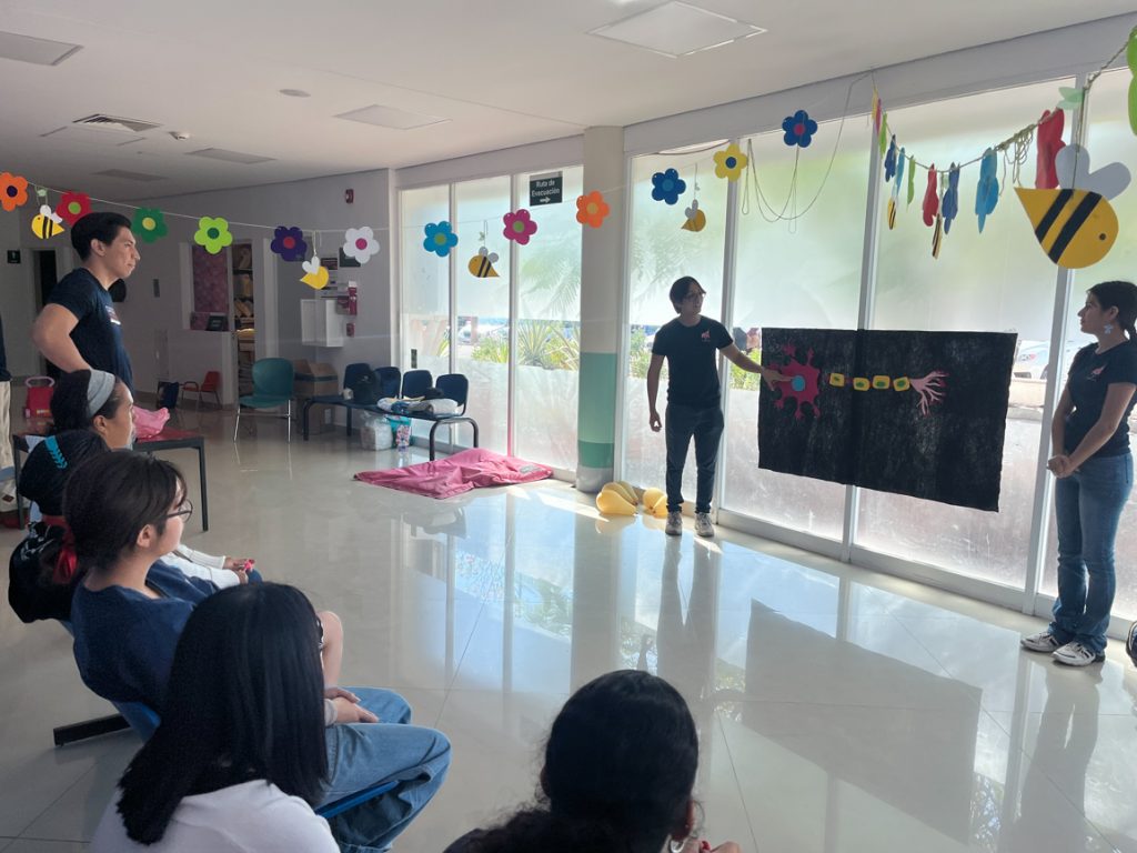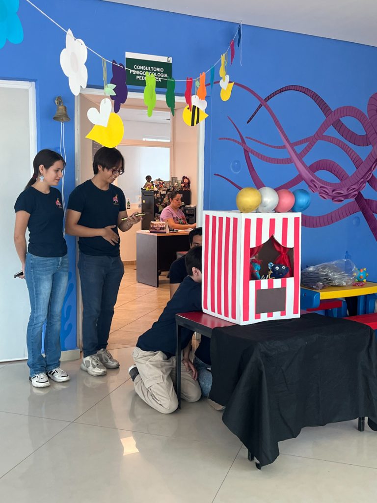 Estudiantes de la Facultad de Psicología de la Universidad de Colima, integrantes del grupo de voluntariado Amigos de Niños con Cáncer, coordinado por la docente Fabiola Rojas Larios, y del club académico Neurofilia, dirigido por el docente Óscar Porfirio González Pérez, unieron esfuerzos en una emotiva y creativa iniciativa para acercar el conocimiento científico a niñas y niños del área de Oncopediatría del Instituto Estatal de Cancerología.