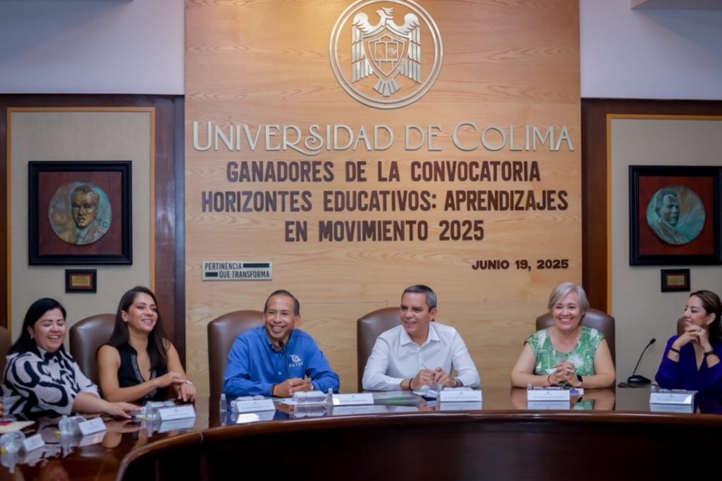 El Rector de la Universidad de Colima (UdeC), Christian Jorge Torres Ortiz Zermeño, entregó constancias a 14 docentes de nivel medio superior y superior que obtuvieron un lugar en la “Convocatoria Horizontes Educativos: Aprendizaje en movimiento 2025”. Los docentes ganadores estarán durante una semana en la Ciudad de México para recibir capacitación en temas de educación y ciencia de expertos de la UNAM y del Instituto Politécnico Nacional (IPN).