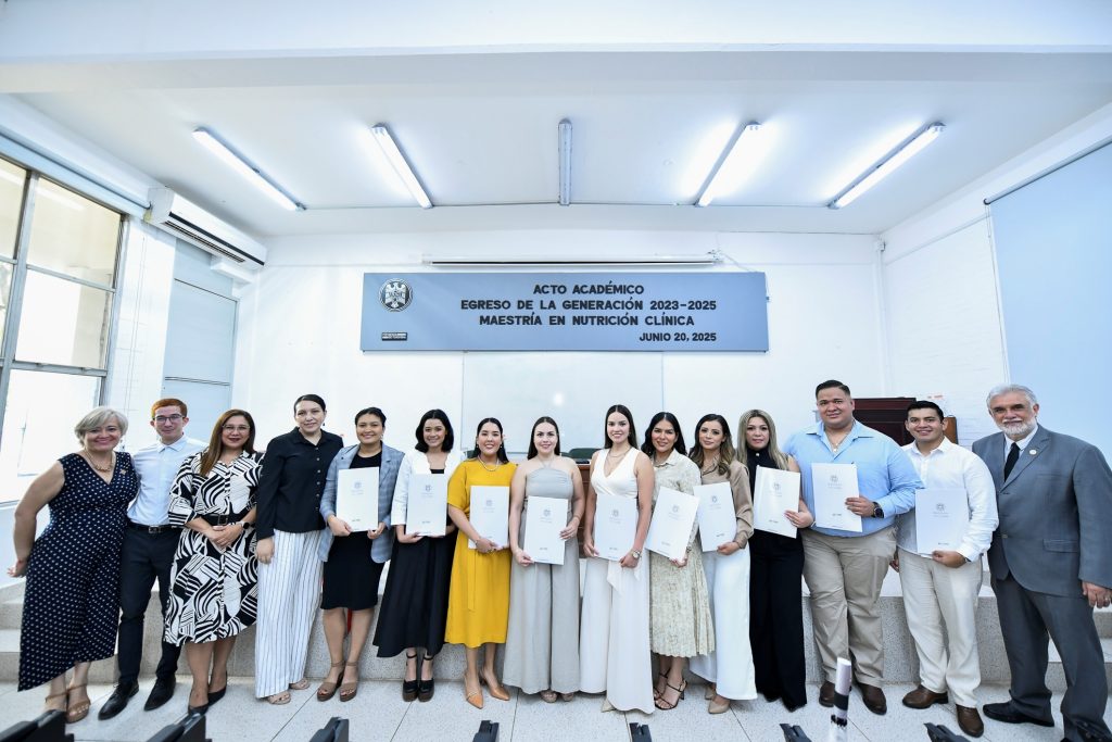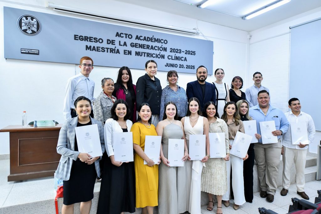 Egresó la primera generación de la Maestría en Nutrición Clínica de la Universidad de Colima con 11 nuevos posgraduados, en su mayoría mujeres, todas y todos con formación de base en Nutrición. “Un grupo con conocimientos sólidos, mirada crítica, sensibilidad humana y compromiso con la salud pública, que ha asumido el desafío de abrir camino con pasión y disciplina”.
