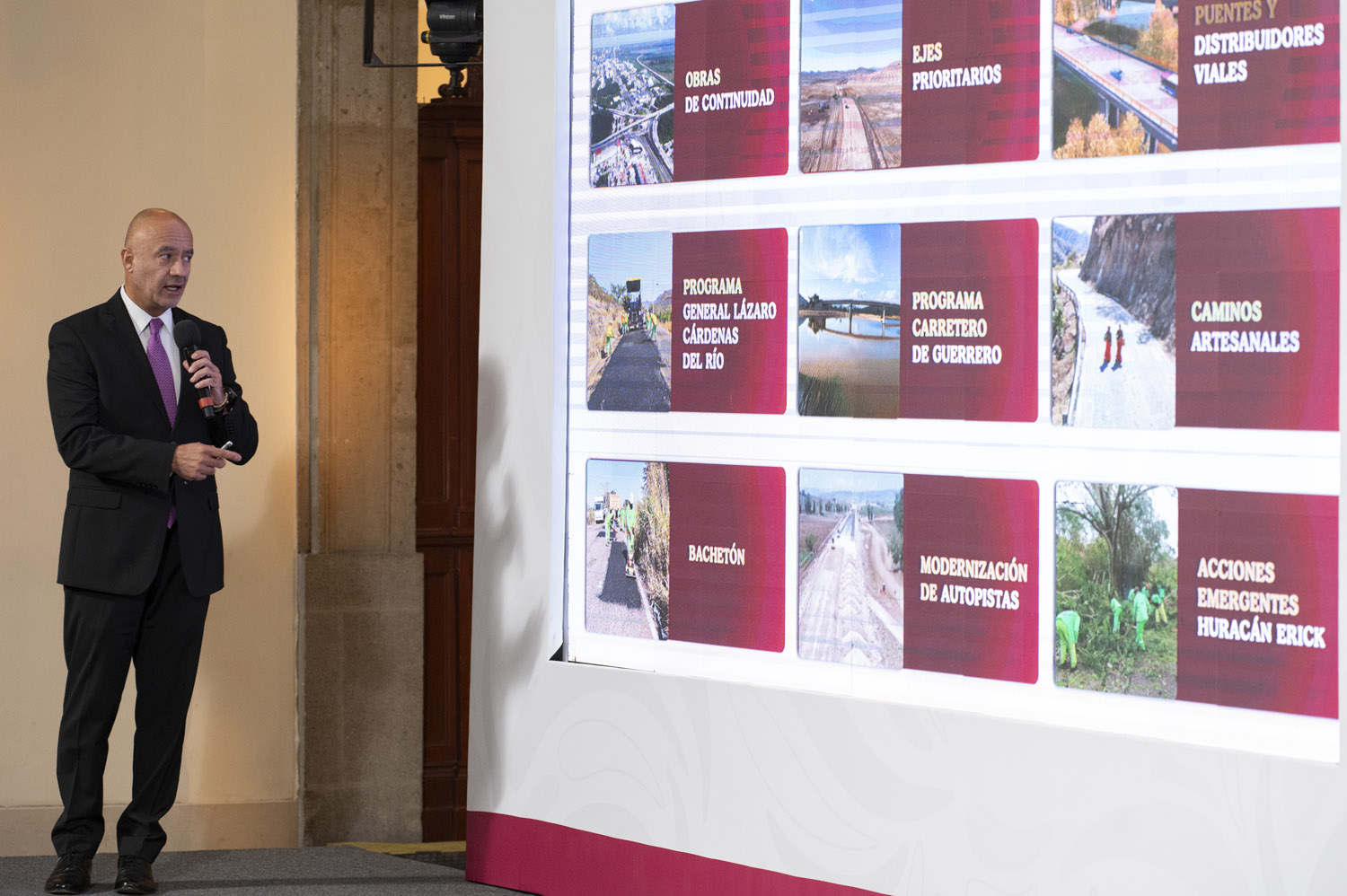 Recordó que son 109 kilómetros (km) de obras de continuidad, 2,220 km de ejes prioritarios, 16 km en 21 puentes y distribuidores, 904 km de programa “Lázaro Cárdenas del Río”, obras del Programa Carretero de Guerrero, 2,107 km de caminos artesanales, 48,653 km de conservación rutinaria y casi 10 mil de conservación periódica. Además, como parte de las acciones emergentes tras el paso del huracán Erick, en Guerrero y Oaxaca, se han retirado 173,800 metros cúbicos (m3) de material producido por deslaves y derrumbes, a través de las acciones de 547 trabajadores con 223 máquinas, además de que se realiza la revisión de 10 puentes.