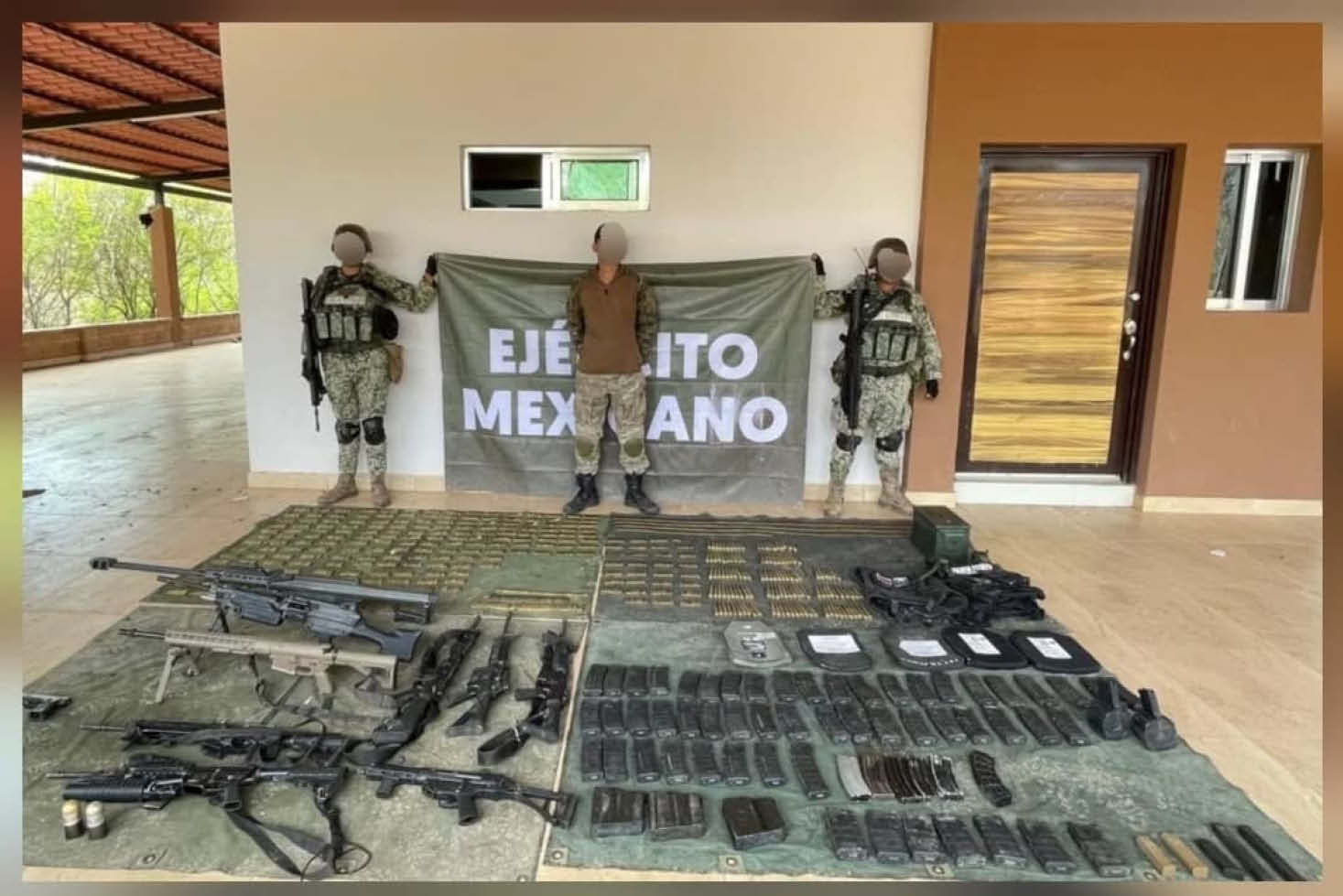 En otra acción, al realizar recorridos terrestres, en el poblado Caminaguato fue detenido un integrante del mismo grupo delictivo a quien se le aseguraron 10 armas de fuego, entre ellas, un fusil Barret y una ametralladora.