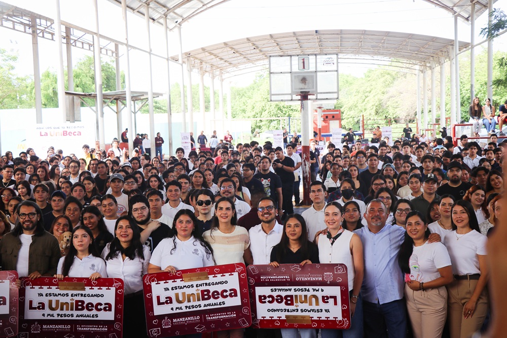 En 2 ceremonias consecutivas realizadas en la Unidad Deportiva Jaime “Tubo” Gómez, la presidenta municipal de Manzanillo, Rosa María Bayardo Cabrera, y Ana María Gallardo Vázquez, delegada universitaria en representación del Rector Christian Torres Ortiz Zermeño, encabezaron la tercera entrega esta semana de tarjetas del programa UniBecas, beneficiando a más de 1,300 estudiantes que estudian el nivel superior en el estado.