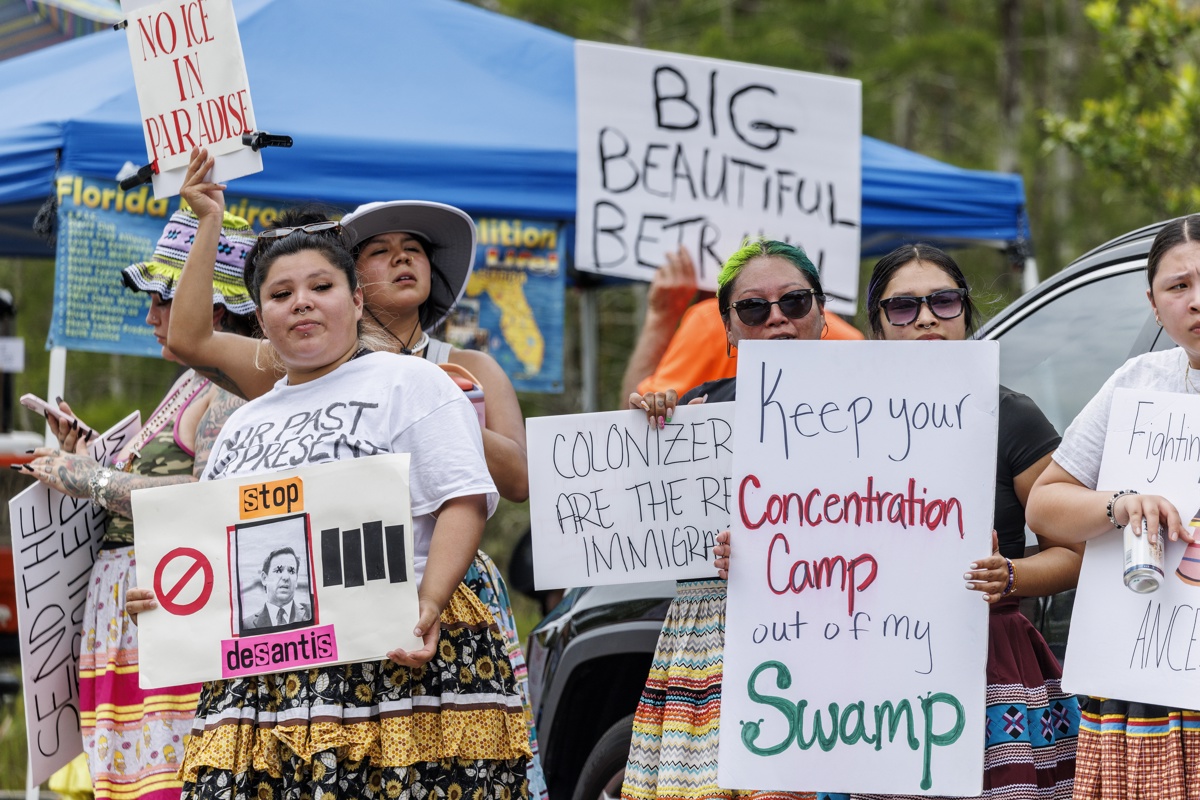 “Tenemos que abogar por todos nosotros”, manifestó una de las líderes de la protesta, Betty Osceola, indígena del pueblo mikasuki, que habita el lugar. “Busquen en su corazón para rezar por todas estas personas detenidas para que puedan volver a ser humanas otra vez”.