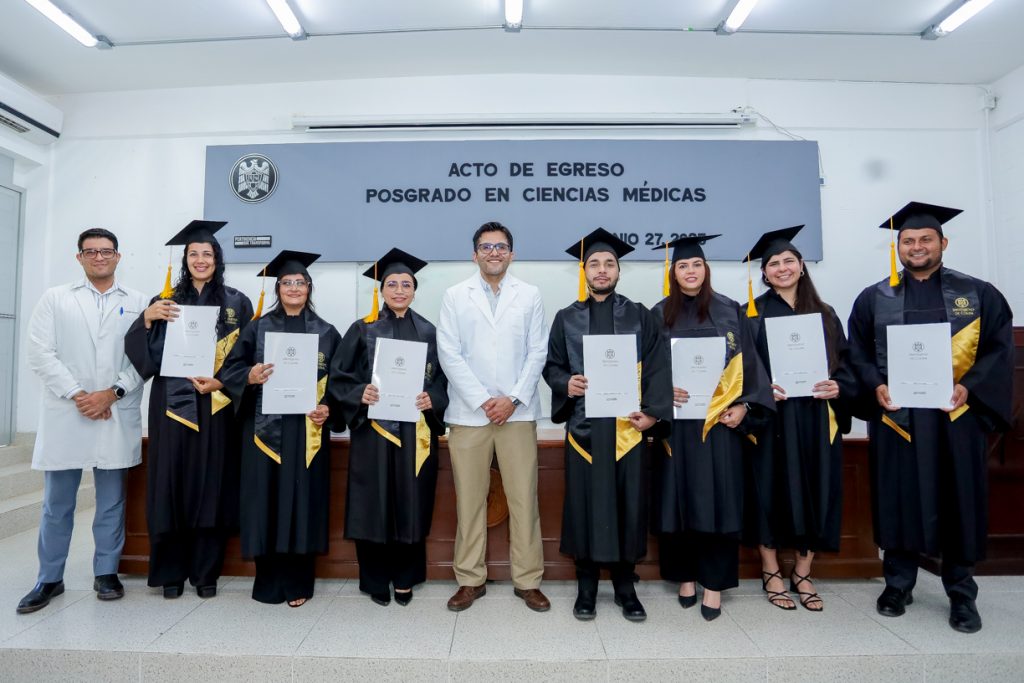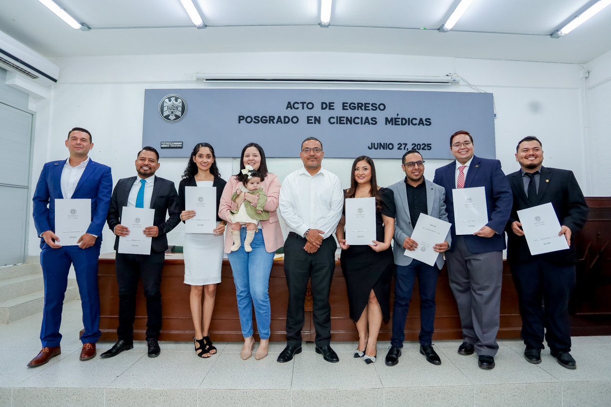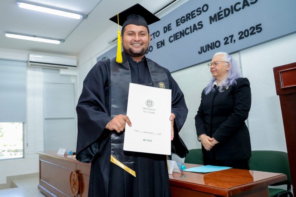 En un acto académico, egresados y egresadas de la generación 2023-2025 de la Maestría en Ciencias Médicas y de la Generación 2022-2025 del Doctorado en Ciencias Médicas de la Facultad de Medicina de la Universidad de Colima (UdeC), recibieron sus certificados de culminación del posgrado.