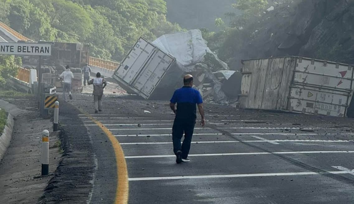 La mañana de este lunes 30 de junio se registró un aparatoso accidente en la autopista Guadalajara-Colima, a la altura del puente de la barranca de Beltrán, en el kilómetro 119+000, con dirección a la capital del estado de Jalisco. Un tráiler que transportaba 2 contenedores volcó, bloqueando por completo ambos carriles de circulación.