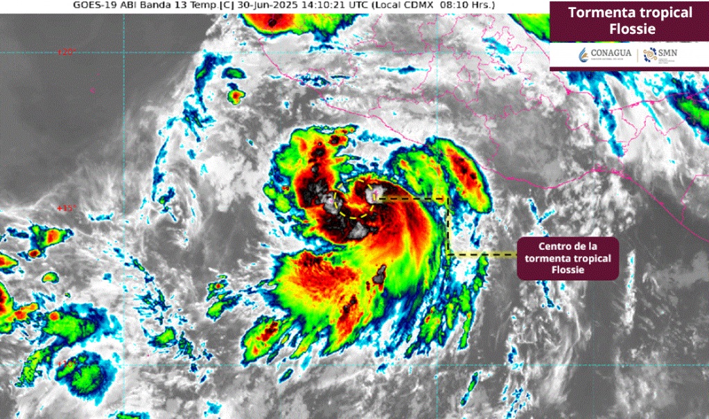 La tormenta tropical Flossie genera lluvias intensas a torrenciales, fuertes rachas de viento y oleaje elevado en el occidente y sur del país, informó este lunes el Servicio Meteorológico Nacional (SMN). Se prevé que esta noche el fenómeno se intensifique y alcance la categoría 1 de huracán en la escala Saffir-Simpson.