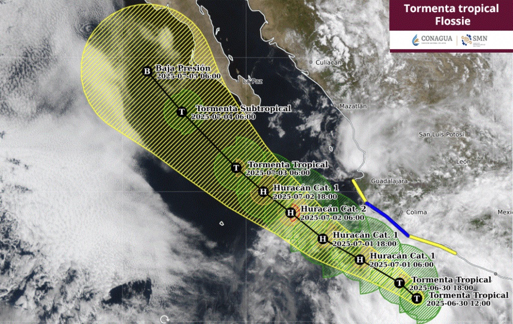 Flossie se mantendrá en vigilancia permanente, ya que, de acuerdo con la trayectoria prevista, continuará intensificándose y afectando el occidente del país durante las próximas 48 horas, aunque sin tocar tierra directamente.