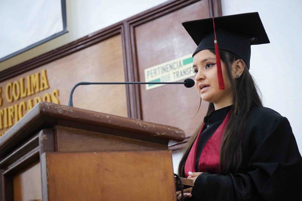 La alumna Dulce Araceli Alvarado, en representación de sus compañeras y compañeros, agradeció a sus docentes por ser su guía. “Gracias por su paciencia, sus palabras de aliento y por siempre creer en nosotros, incluso cuando nosotros mismos lo dudamos. Sus enseñanzas han ido más allá de las aulas, nos han enseñado a ser mejores personas y que el aprendizaje está en cada rincón de la vida”.